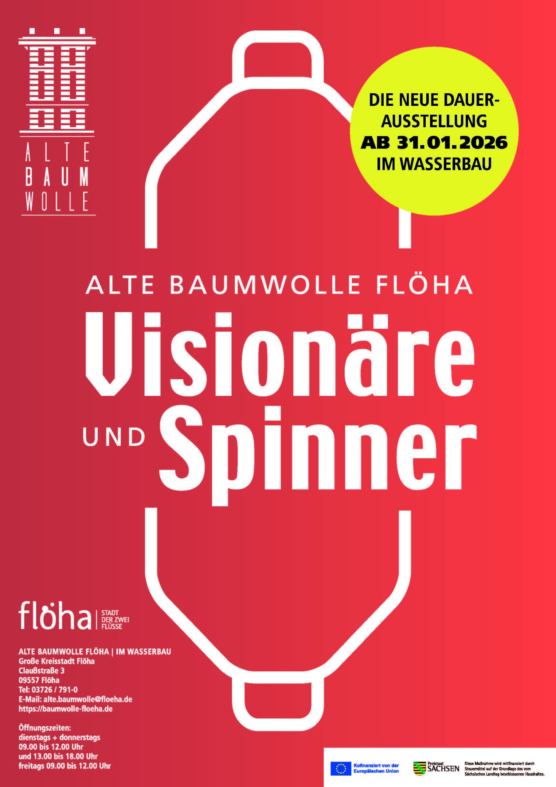 Drei Jahre intensive Recherchen und Konzeption sowie die Finanzierung mit EFRE-Fördermittel haben eine Dauerausstellung entstehen lassen, die auf unverwechselbare Weise die Geschichte des ehemaligen, überregional bedeutsamen Industriestandortes erzählt und somit auch für weitere Generationen bewahrt. Viele Bürgerinnen und Bürger Flöhas, der örtliche Geschichtsverein, ehemalige Beschäftigte und Wegbereiter haben bei der historischen Aufarbeitung mitgewirkt. Die damit immer noch spürbare Verbundenheit mit dem Standort „Alte Baumwolle“ macht die Ausstellung zu etwas ganz Besonderem. Auf eine moderne Art wird die Historie der „Alten Baumwolle“ und die damit verbundene Stadtentwicklung Flöhas multimedial vermittelt. Die Ausstellung ist für alle Altersgruppen geeignet.
